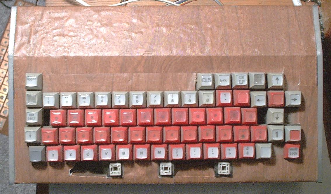 Egy Hunor-158 (EMG gyártmányú) germánium tranzisztoros-Nixie csöves számológép klaviatúra dobozába (jó masszív alu öntvény) került beépítésre. A képeken hiányzik a Space billentyű hosszú lapja, ami 3 párhuzamosan beépített gombra volt ragasztva (leszáradt a technokol) A gombok egymáshoz technokollal lettek ragasztva, és mindegyik 1-1 3.3K-s ellenállással 5 V-ra felhúzva (open collectoros kimenet). A gombok TÁKI (Rafi Lic.) Hall-generátoros nyomógombok voltak. Volt külön Shift, és CTRL lock (bentmaradós gombok), és külön kurzor vezérlés. Egyszóval akkoriban full extrás valami volt.