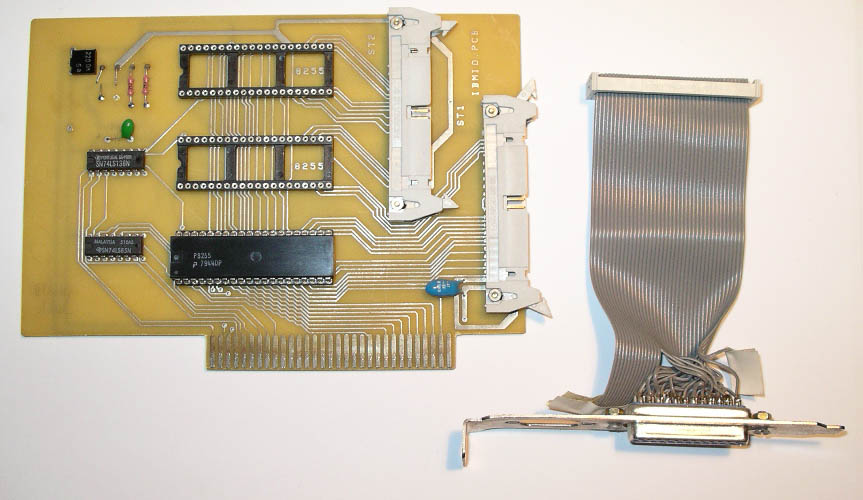 Azért ez, mert munkahelyemen akkoriban éppen szükség volt egy (ill. több) ilyen PC-s interfészre, ezért több példányban is meg lett építve, melyből egy az otthoni PC-mben folytatta pályafutását. Az interfész kártya 3 darab 8255 IC-t tartalmazott, és ISA slotba lehetett dugni. Az én céljaimnak természetesen elegendő volt egy darab 8255 is a kártyán. Elkészítve a PC és a Primo interfészei közötti szalagkábelt, a hardver készen állt a két gép kommunikációjára.