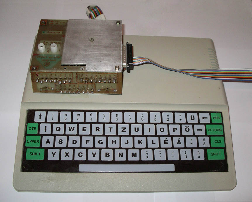 A periféria csatlakozón minden szükséges kivezetés megtalálható, csak annyi probléma volt, hogy a RESET jel nem volt megfelelő szintű. Ezt megjárattam egy szabad LS04 kapun, és rátettem a B23-as pozícióra, ami egyébként üres volt. Mint általában minden épített áramkörnél, itt sem a panel elkészítése jelentette a fő problémát, hanem a dobozolás, a portkivezetések kialakítása, hogy "további felhasználásra" a lehető legalkalmasabb legyen.